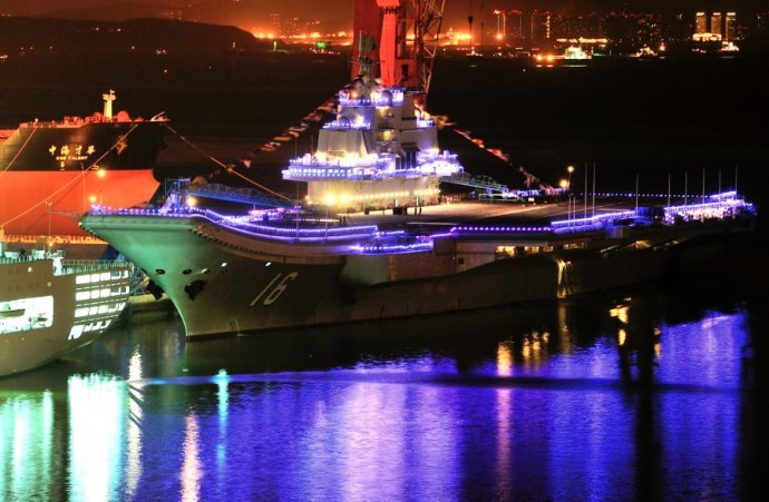 網(wǎng)友拍我航母平臺(tái)“遼寧艦”節(jié)日期間霓虹燈閃亮裝點(diǎn)海灣