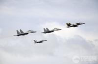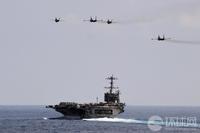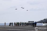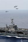 馬來西亞海軍的蘇-30戰(zhàn)機與美國海軍的F/A-18戰(zhàn)斗機組成編隊從華盛頓號航母上空飛過