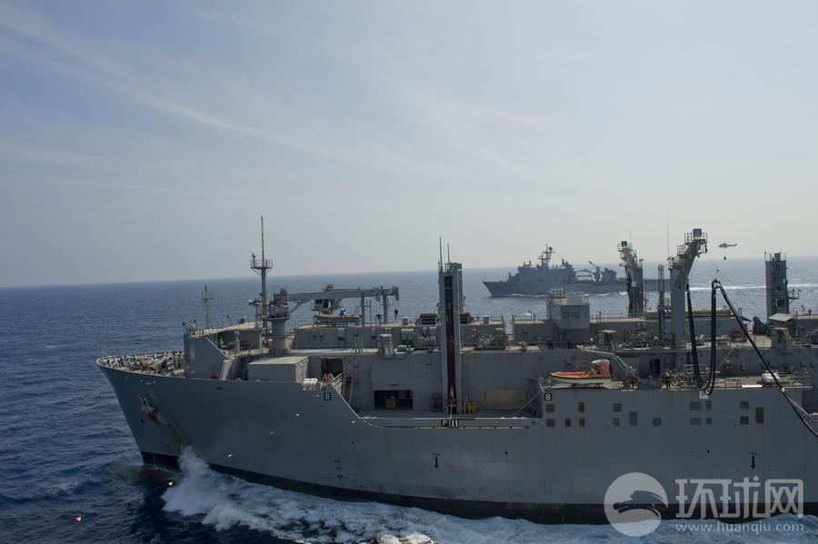 演習(xí)中美軍補給艦演練海上垂直補給