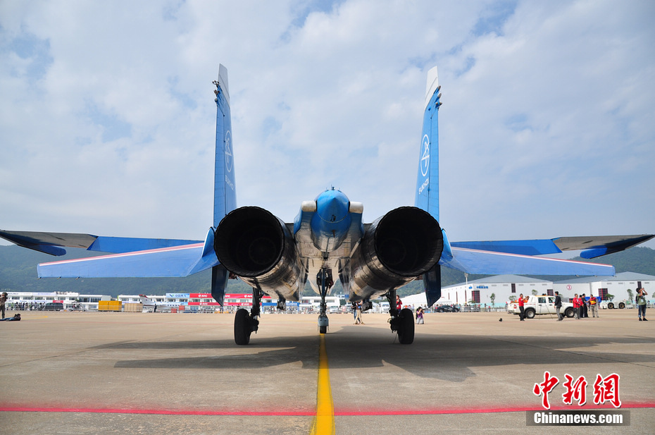 俄羅斯勇士飛行表演隊蘇27尾部實(shí)拍。陳海峰 攝