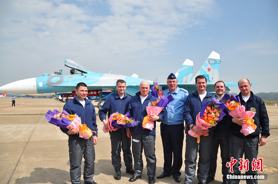 俄羅斯勇士飛行表演隊(duì)飛行員合影。陳海峰 攝