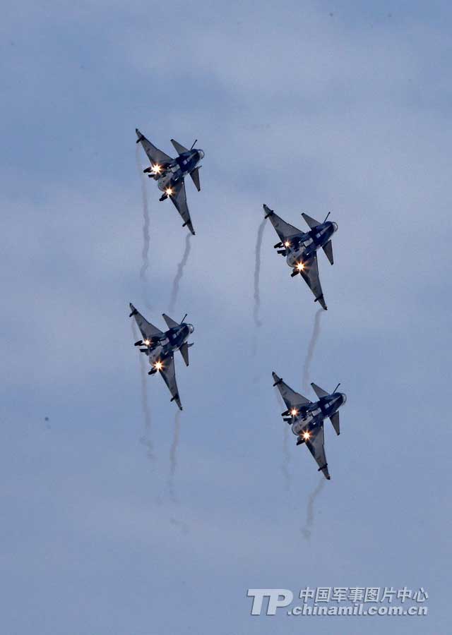 4機(jī)菱形隊(duì)放起落架斜盤(pán)旋。解放軍報(bào)記者 喬天富 攝