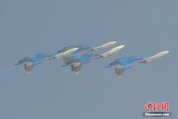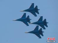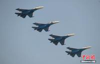 中新網(wǎng)珠海11月12日電(陳海峰)12日下午兩點整,俄羅斯勇士飛行表演隊5架表演機準(zhǔn)時啟動進(jìn)行飛行表演,展示了“加力盤旋”、“躍升半滾倒轉(zhuǎn)”、“向上開花”、“雙機對沖”等精彩動作,為觀眾提供了一場視覺盛宴,體現(xiàn)了蘇27優(yōu)異的機動性能。