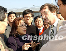香港立法會交通事務(wù)委員會、保安事務(wù)委員會等議員和團(tuán)體代表,一月十日參觀即將實(shí)施二十四小時通關(guān)的落馬洲管制站。圖為劉健儀等向該管制站工程師了解擴(kuò)建事宜。潘索菲 攝