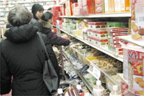 中新網(wǎng)1月13日電 距離羊年春節(jié)還有10多天,紐約華埠的各大小超級市場、海味店、禮品店已紛紛推出應(yīng)節(jié)物品。雖然經(jīng)濟(jì)持續(xù)不景氣,但華人對于春節(jié)是不可不過的,因此春節(jié)購物潮已經(jīng)開始。