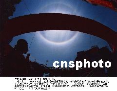 中新網(wǎng)1月14日電 1月6日,吉林省靖宇縣上空出現(xiàn)了兩輪太陽在天空中交相輝映的奇景,兩個太陽相距不是很遠,肉眼看上去都十分刺眼,而且一輪太陽的旁邊還出現(xiàn)了一道亮麗的彩虹。