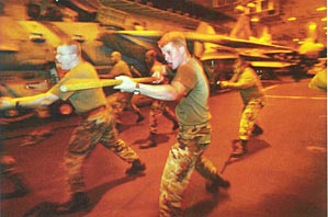 各種戰(zhàn)前演習(xí)頻頻在海灣展開。1月27日,聯(lián)合國(guó)武器核查小組負(fù)責(zé)人布利克斯將向安理會(huì)提交對(duì)伊拉克武器核查報(bào)告。如果薩達(dá)姆不能讓美國(guó)滿意,布什隨時(shí)可能扣動(dòng)戰(zhàn)爭(zhēng)的扳機(jī)。