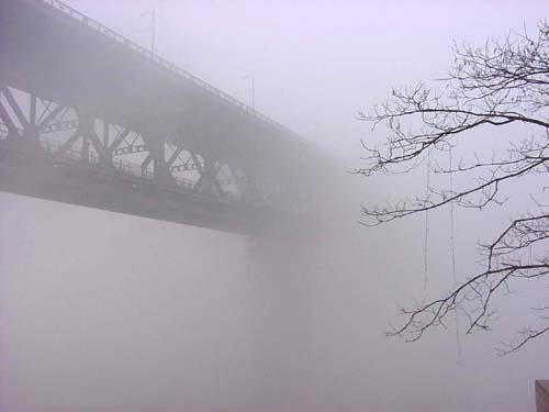截止中午12點記者發(fā)稿時,江城仍然被籠罩在濃濃的霧氣中。(鐘心程銳)