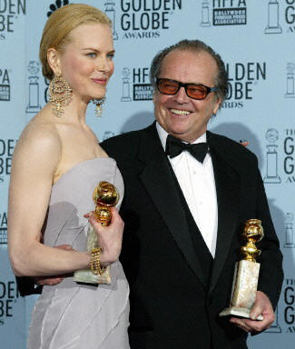 圖為妮可·基德曼(左)和杰克·尼克爾遜(右)分別獲得劇情類(lèi)電影最佳女、男主角獎(jiǎng)。