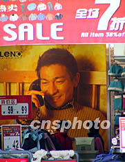 春節(jié)前夕又到了換季之時(shí),北京王府井的時(shí)裝店紛紛開始換季打折促銷活動(dòng),一家商場掛出香港巨星劉德華的巨幅廣告吸引顧客。作者:杜洋