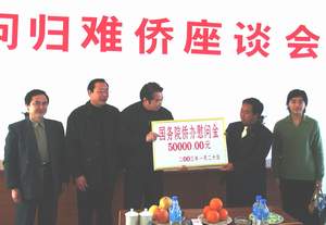 座談會上,許又聲副主任還代表國務(wù)院僑辦向平遠華僑農(nóng)場贈送了五萬元人民幣慰問金。