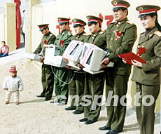 春節(jié)前夕,中國各地解放軍與民眾互動活動活躍。地處山東省棗莊市山區(qū)的解放軍軍官為當(dāng)?shù)匦W(xué)捐獻(xiàn)計算機(jī),以便山村里的孩子能接受到信息教育。作者:劉明祥