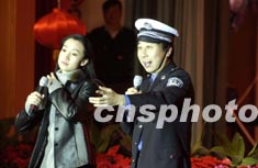 著名相聲演員馮鞏,二十一日一身警裝在北京為公安警員表演相聲,向他們致以新春佳節(jié)的問(wèn)候。作者:任海霞