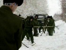 據參與營救工作的阿勒泰公路總段人士說,嚴重受阻的六條國省道路有二百多公里,包括國道二一六線、二一七線。該段共組成六支搶險隊奔赴雪阻現場,投入搶險機械二百多臺,清理積雪八十五萬立方米,僅堆在路基旁的積雪就達兩米高。目前仍有部分路段需要不斷清除雪阻以保證路面正常通行。