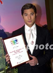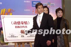 歌星郭富城1月22日在香港出席廣東千秋傳媒有限公司投資的電視劇“動感豪情”簽約儀式,郭富城在該電視劇擔(dān)任男主角,亦是他主演的首部國產(chǎn)電視劇,該電視劇全劇以香港作為背景,透過內(nèi)地87個電視臺播放,讓內(nèi)地超過數(shù)以億計的觀眾收看,這將有助內(nèi)地觀眾來香港旅游的興趣。中新社傳真 鄧慶樂 攝