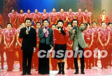 2003年中央電視臺春節(jié)聯(lián)歡晚會將由朱軍、倪萍、周濤、李詠(從左至右)擔(dān)當(dāng)主持人,同時他們還在多個節(jié)目中客串角色。作者:王新