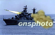 中央軍委授予海軍哈爾濱艦“海上先鋒艦”榮譽(yù)稱(chēng)號(hào)命名大會(huì)二十六日在青島某軍港舉行。海軍哈爾濱艦是中國(guó)國(guó)產(chǎn)某新型導(dǎo)彈驅(qū)逐艦首艦。圖為哈爾濱艦發(fā)射反艦導(dǎo)彈。作者:王松岐
