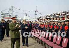 中央軍委授予海軍哈爾濱艦“海上先鋒艦”榮譽(yù)稱(chēng)號(hào)命名大會(huì)二十六日在青島某軍港舉行?傉尾、海軍及艦隊(duì)領(lǐng)導(dǎo)看望哈爾濱艦官兵。作者:王松岐