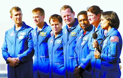 得克薩斯州東部今天繼續(xù)加緊搜尋行動(dòng)。更多的殘骸被找到,最大的據(jù)報(bào)有汽車那么大,此外還找到一些宇航員的個(gè)人用品,包括一個(gè)安全帶、一個(gè)頭盔和印有全部七名宇航員名字的徽章等。(完)