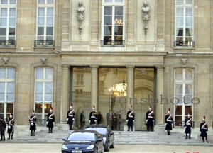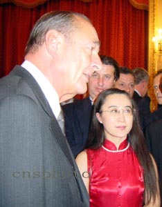 下午五點(diǎn)四十五分左右,希拉克興致勃勃來(lái)到招待會(huì)大廳,并對(duì)見(jiàn)到老熟人、中國(guó)駐法大使吳建民感到十分高興。他說(shuō),今年是中國(guó)羊年,羊年是一個(gè)吉利的年份。他向法國(guó)的華僑華人致以節(jié)日的祝賀。