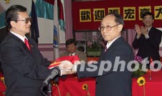 二月十五日農歷正月十五下午,有百年歷史、在僑界有廣泛影響的紐英倫中華公所決定升中華人民共和國國旗。中國駐紐約總領事張宏喜(右)向中華公所主席黃兆祥(左)贈送了五星紅旗。作者:陳建