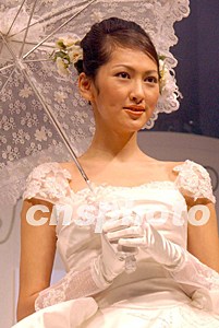 第三十屆情人節(jié)婚紗及結(jié)婚用品展,二月十五日在香港會展中心舉行。圖為香港名模展示婚紗。錢興強 攝