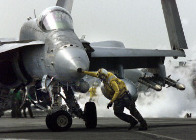 F/A-18“超級(jí)黃蜂”(SuperHornet)艦載多用途超音速戰(zhàn)斗機(jī),由美國(guó)麥克唐納·道格拉斯公司制造,1995年首次飛機(jī),裝備于“林肯”(USS Abraham Lincoln)號(hào)核動(dòng)力航空母艦。