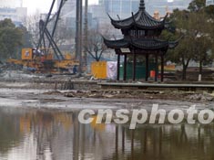 杭州西湖湖底隧道工程動工以來,西湖湖面以平均每天三十厘米的速度下降,截至十八日下午,西湖已基本見底。據悉,這是西湖近百年來第二次見底,第一次見底是一九五五年底至一九五六年初,由大旱造成。作者:張茵
