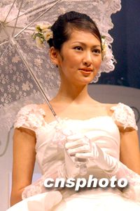 第三十屆情人節(jié)婚紗及結(jié)婚用品展,二月十五日在香港會展中心舉行。圖為香港名模展示婚紗。作者:錢興強