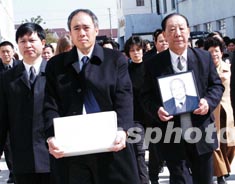 二月二十日,世界著名高能物理學(xué)家袁家騮教授的骨灰,在其親屬及江蘇省太倉市官員、太倉市明德中學(xué)代表的護(hù)送下,從北京運(yùn)抵故鄉(xiāng)太倉安葬。當(dāng)?shù)孛鞯轮袑W(xué)的學(xué)生前往迎接。袁先生生前曾先后捐助明德中學(xué)五百余萬元,幫助明德中學(xué)建起了科技樓,明德樓。作者:王大經(jīng)