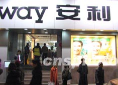 在中國(guó)采用“店鋪經(jīng)營(yíng)并雇傭推銷人員”經(jīng)營(yíng)方式的美國(guó)安利公司,今春公布其在中國(guó)內(nèi)地八十八個(gè)城市已經(jīng)開設(shè)九十八家店鋪,并于新近在中國(guó)推廣家居送貨、異地定貨、電子商務(wù)等服務(wù)項(xiàng)目。圖為美國(guó)安利公司設(shè)在北京的店鋪。作者:王麗南