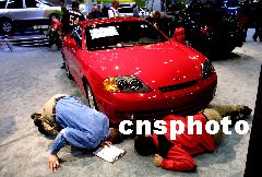 一年一度的美國(guó)芝加哥車展正在展覽中心舉行,數(shù)十家世界著名汽車制造商的一千多件展品登臺(tái)亮相,圖為本田汽車展臺(tái)前,參觀者和推銷員一起對(duì)最新問世的轎車上下打量,仔細(xì)研究。作者:王瑤