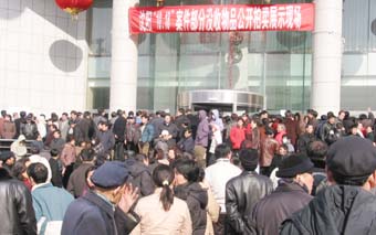 今天,為期六天的“慕馬腐敗大案”贓物拍賣預(yù)覽落幕,估計(jì)共有近十萬沈陽市民趕到展出現(xiàn)場“金劍大廈”,涌進(jìn)面積不大的幾個(gè)展廳,可以用“人潮洶涌、比肩接踵、絡(luò)繹不絕”來形容,人數(shù)之多大大超出舉辦者的意料。