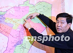 圖:新上任的中共喀什地委書記史大綱介紹地震災(zāi)情