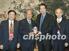 中國國務(wù)院僑辦副主任許又聲二十八日在北京會見以會長羅少榮(左二)為首的澳門歸僑總會訪問團(tuán)。作者:滿會喬