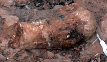 中新網(wǎng)3月2日電 曾經(jīng)出土過許多恐龍蛋化石、骨化石的浙江省天臺縣,最近邀請有“龍王”美譽(yù)的中國科學(xué)院古脊椎古人類研究所著名恐龍專家董枝明教授、中國地質(zhì)科學(xué)院資源所礦物巖石學(xué)家陳克樵教授首次對恐龍骨化石進(jìn)行科學(xué)的搶救性挖掘。經(jīng)過近一周的工作,已發(fā)現(xiàn)了恐龍脊柱骨、肋骨、尾脊、小的甲片、前后肢等化石。