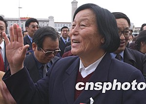 圖:全國(guó)人大代表“十屆元老”申紀(jì)蘭參會(huì)