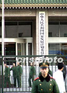 備受各界關注的國務院機構(gòu)改革方案六日上午提請十屆全國人大一次會議審議。根據(jù)這一方案,國家發(fā)展計劃委員會將改組為國家發(fā)展和改革委員會,以完善宏觀調(diào)控體系。圖為武警戰(zhàn)士三月在國家計委前執(zhí)勤。作者:羅杰
