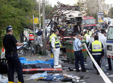 中新網(wǎng)3月6日電 以色列北部海濱城市海法5日下午發(fā)生的公共汽車自殺炸彈爆炸事件,已造成15人喪生,40余人受傷。這是兩個(gè)月來(lái)首次在以色列發(fā)生的自殺炸彈襲擊事件。
