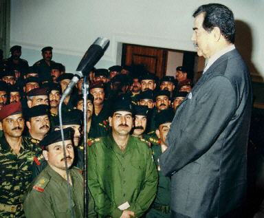 3月5日,伊拉克總統(tǒng)薩達(dá)姆在巴格達(dá)會(huì)見共和國衛(wèi)隊(duì)官員。