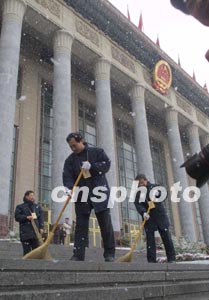 中新社北京三月十日電(記者吳慶才)“北國二月難覓花,飛雪飄飄灑京華”。十日清晨的一場飛雪給正在召開兩會(huì)的北京又增添了一份喜慶。