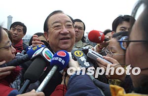 三月十四日上午,出席全國政協(xié)十屆一次會(huì)議閉幕式的全國政協(xié)委員朱慶生談起最近發(fā)生的非典型性肺炎時(shí),立刻被記者團(tuán)團(tuán)圍住。作者:史利