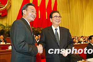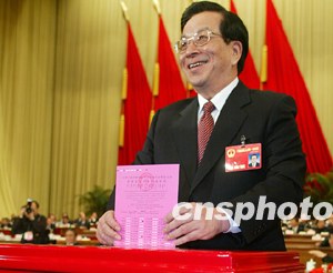 ——中共中央政治局常委吳邦國當(dāng)選新一屆全國人大常委會(huì)委員長。