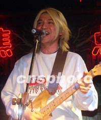 曾經(jīng)風(fēng)靡一時(shí)的香港Beyond樂隊(duì),15日晚首次在中國(guó)的西部蘭州焦點(diǎn)俱樂部登臺(tái)獻(xiàn)藝。圖為香港Beyond樂隊(duì)的前成員葉世榮在舞臺(tái)上激情高歌。作者:劉呈軍