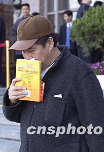 十屆全國(guó)人大一次會(huì)議第七次全體會(huì)議十七日在北京人民大會(huì)堂召開(kāi),全國(guó)人大代表趙本山在退場(chǎng)時(shí)以傳記文學(xué)《東方笑神趙本山》掩面而出。作者:廖文靜
