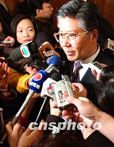再次出任衛(wèi)生部部長(zhǎng)的張文康十七日就非典型性肺炎回答港臺(tái)記者提問。作者:鄭萍萍