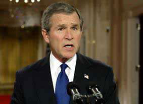 我們面臨的危險(xiǎn)是清楚不過(guò)的:在伊拉克的幫助下,恐怖分子可以利用生化武器,甚至某一天可能獲取核武器,并利用這種武器實(shí)施他們既定的襲擊計(jì)劃,將我們國(guó)家或其他任何國(guó)家上萬(wàn)人甚至十幾萬(wàn)無(wú)辜百姓殺死。美國(guó)和其他國(guó)家所做的一切不應(yīng)該得到這種襲擊,也不會(huì)引起這種威脅,但我們將盡一切努力來(lái)挫敗這種襲擊陰謀。我們不會(huì)沿著悲劇的道路走下去,我們將朝著安全的方向走下去。