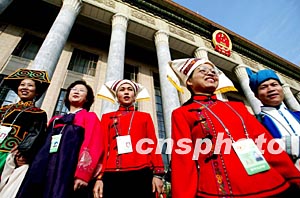 圖:少數(shù)民族代表離開人大會(huì)場(chǎng)
