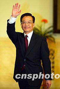 圖:溫家寶揮手見記者