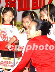 香港歌星莫文蔚在三月十八日香港屯門市中心廣場(chǎng)舉行的“捐血助人愛(ài)心大行動(dòng)”上,擔(dān)任“愛(ài)心捐血之星”。中新社傳真 錢興強(qiáng) 攝